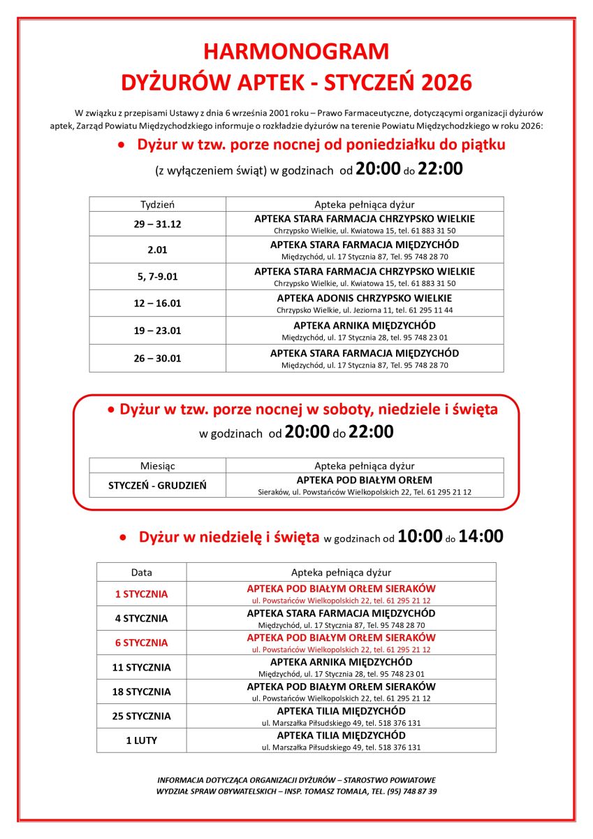Dyżury aptek - styczeń 2026